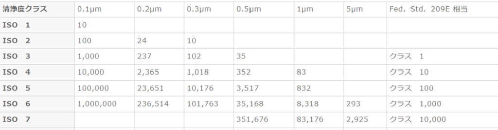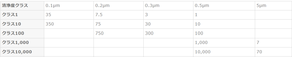 根据每立方英尺(28.3L)空气中所含粒径 0.5μm 以上的粒子数量进行等级划分。