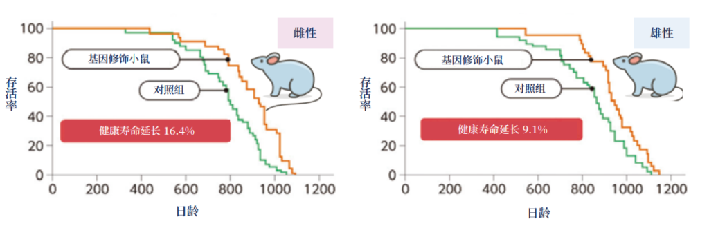 给1只雌性小鼠投喂NMN 后,寿命延长16%